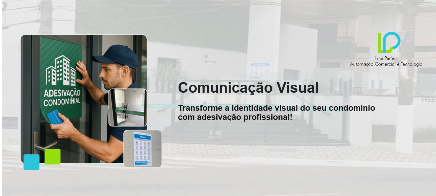 Além da automação, também atuamos com um braço especializado em Comunicação Visual, com destaque para serviços de adesivação de condomínios. Essa área tem como objetivo promover: